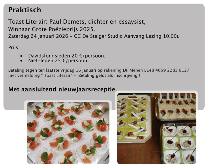 Paul Demets kijkt in zijn poëzie vaak naar de werkelijkheid via de beeldende en audiovisuele kunsten. Over het waarom en hoe zal hij het in zijn lezing hebben. Paul Demets is lector in KASK/School of Arts (Hogeschool Gent) en poëzierecensent voor onder meer De Standaard. Hij schrijft ook over beeldende kunst en over podiumkunsten. Samen met oud-studenten van KASK Gent maakte hij verschillende poëziefilms, die voor internationale festivals geselecteerd werden. |